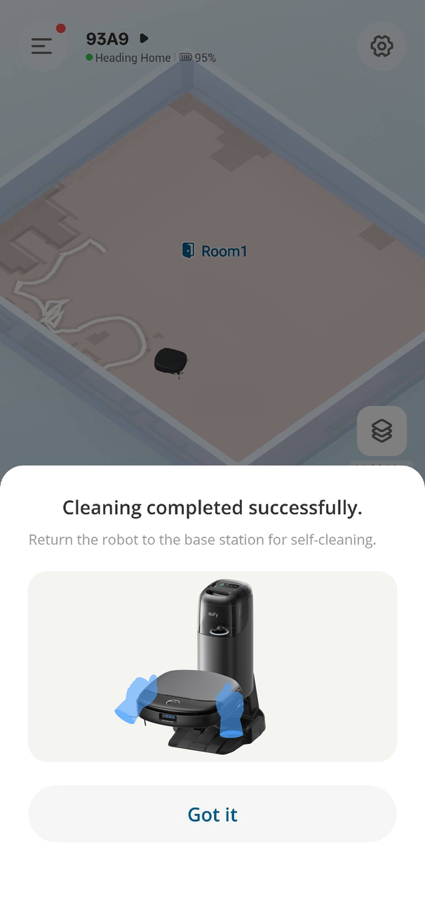 Refrain from manually picking up or moving the robot during the mapping process. After the mapping process is finished, the robot will automatically return to the base station or its initial starting location.