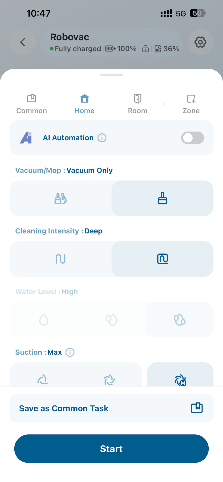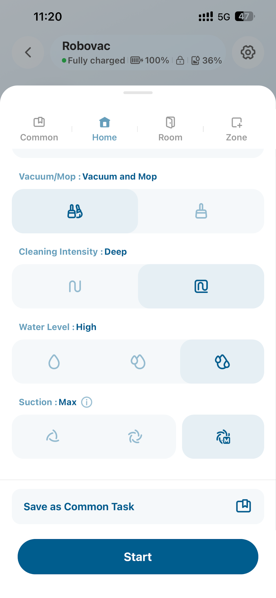 Before the first mopping session with your X12 Pro, use Vacuum-Only mode to remove dust and hair via the eufy app.