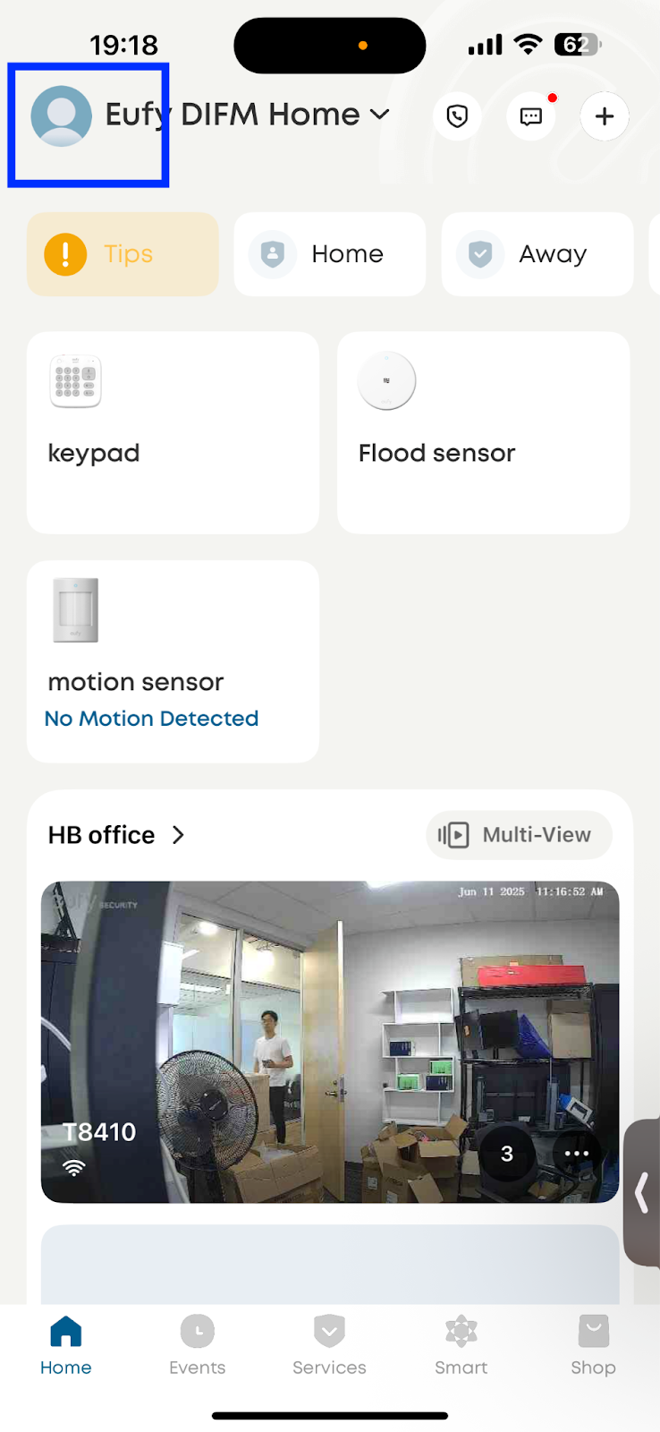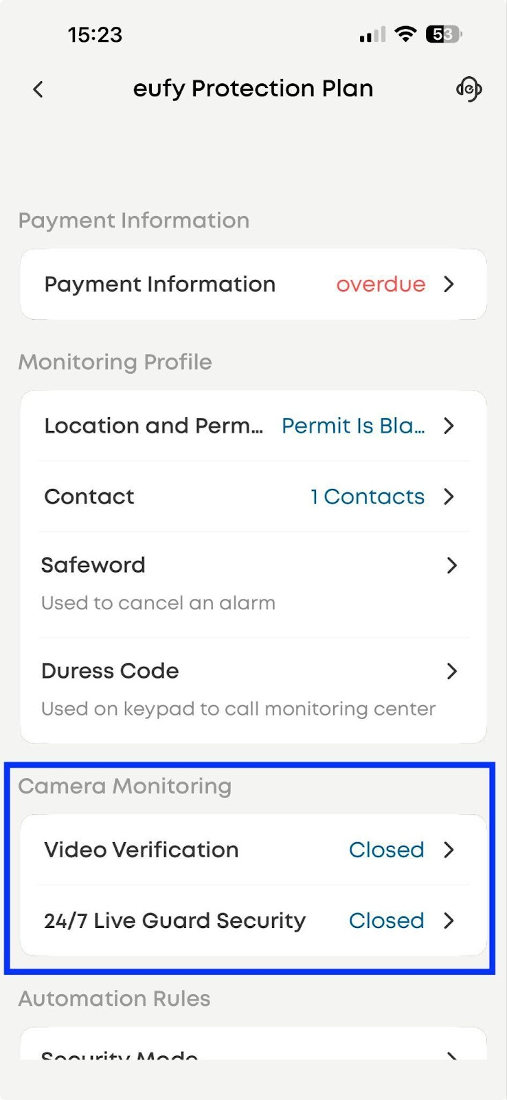 Manage the 'eufy Protection Plan' by clicking on the shield icon in the 'Home' tab. Click on ‘Video verification’ and ‘24/7 Live Guard Security’ to give authorizations.