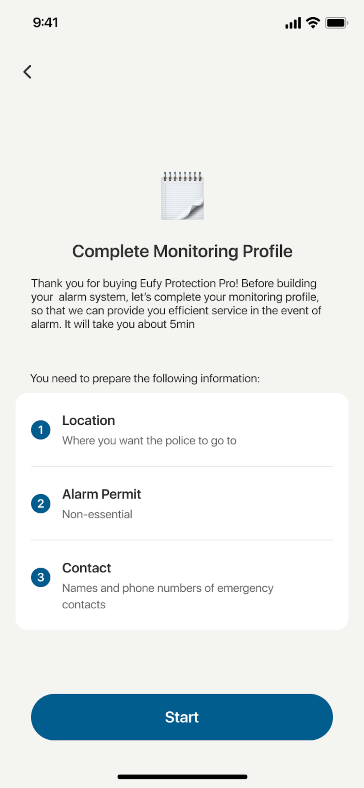 After a successful purchase, you will receive an email. Clicking the link will redirect you to fill in the monitoring profile to activate the subscription service, so that we can provide you with efficient service in the event of an alarm. It will take you about 5 minutes, including Location, Alarm Permit, and Contact.