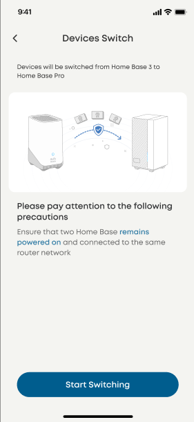 The eufy app will display a device migration reminder, please follow the steps on the app to transfer your existing devices from HomeBase 2,3 to HomeBase Professional S1.