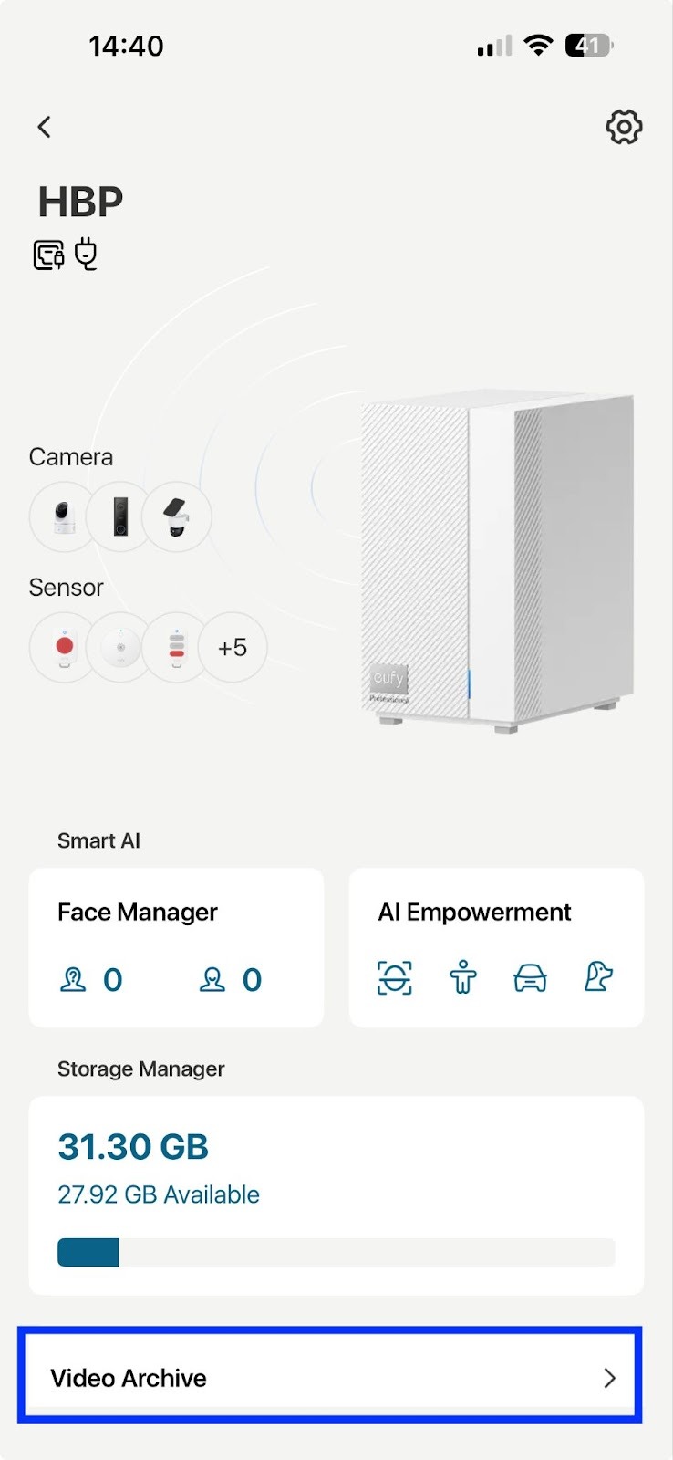 To back up the videos, you can insert a USB Stick first. Then open the App: HomeBase Professional> Settings> Video Archive> Select a period> Select the object> Archive