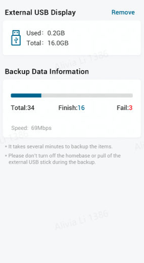 Sometimes, you may need to retain some important video footage on a computer or provide video evidence to the police. You can back up your footage by plugging in a USB Stick via USB port 1 on the back of the HomeBase. The backup videos will be converted to MP4 format.