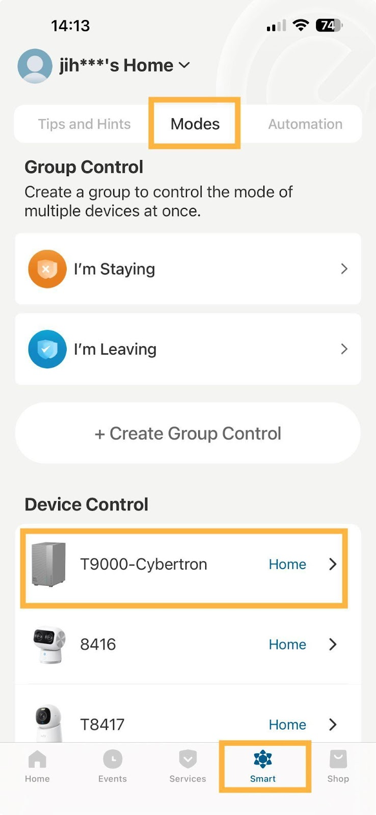 For each mode, you can switch through Eufy APP --> Smart --> modes