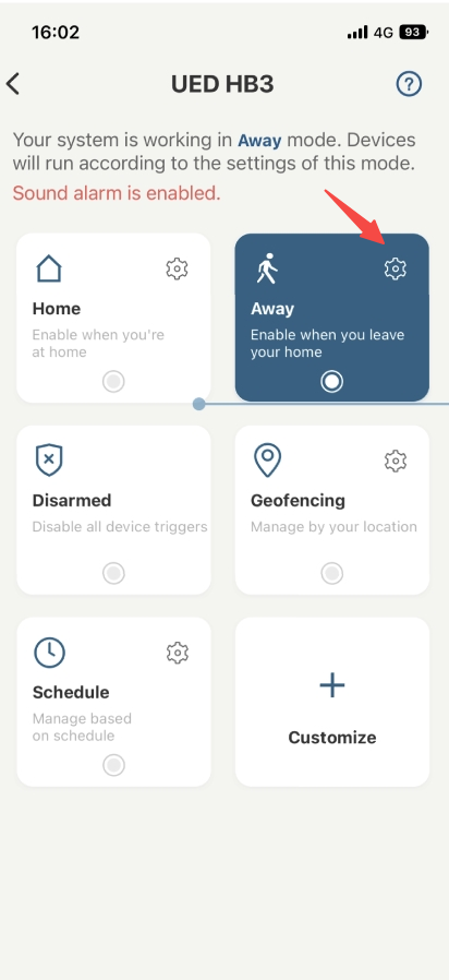 "Home", "Away", and "Disarmed" in the Home tab can help users quickly switch between three commonly used modes