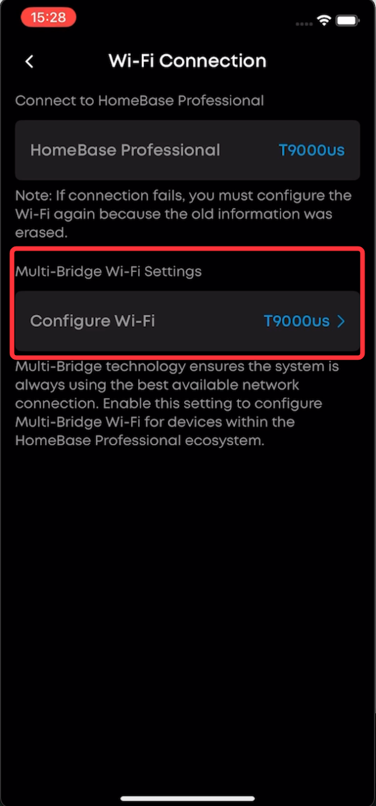 Go to 'General'; click 'Wi-Fi Connection' and find the 'Multi-Bridge' feature;