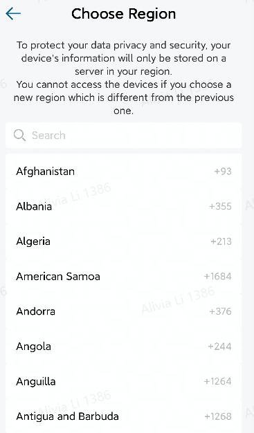 After you choose the region, the app will take you to a screen to begin adding devices!