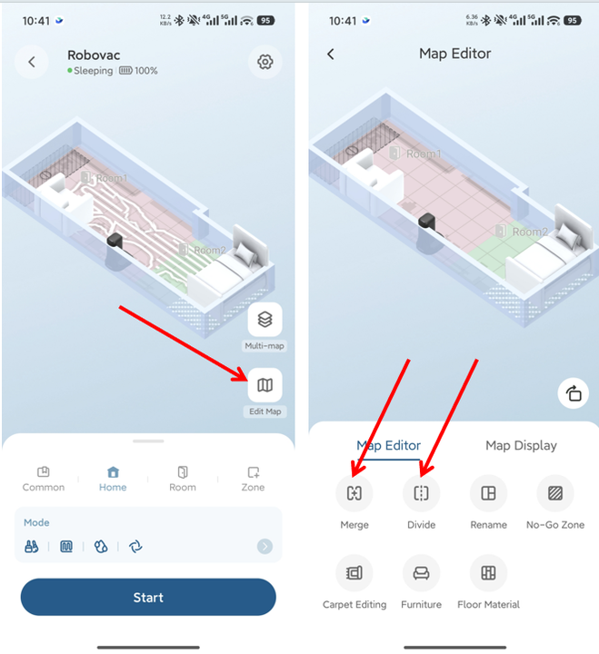 If you notice inaccuracies, you can manually edit the map in the app, such as merging or dividing rooms.