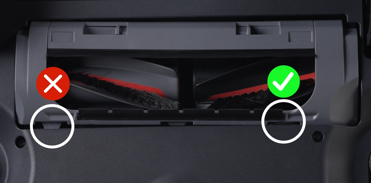Ensure the roller brush cover is installed correctly.