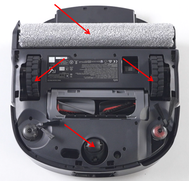 Deformed side brush bristles may interfere with the robot’s bottom.