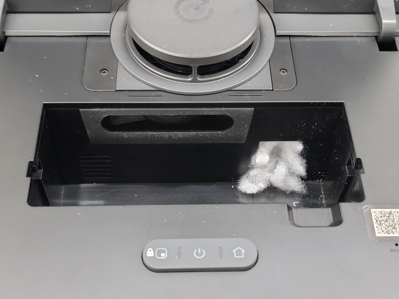 Open the robot's dustbin to check if there is any blockage. Also, check the dust collection pathway in the robot to make sure it is not clogged. If you find any debris or obstructions, carefully remove them to clear the dust collection pathway.