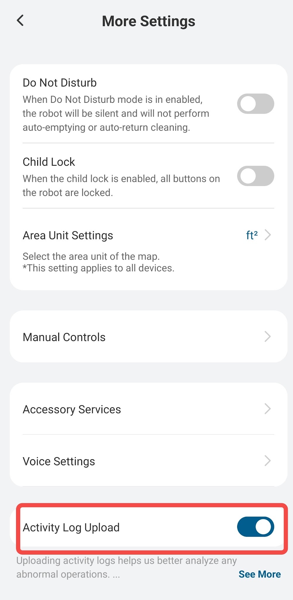 Go to Settings > More Settings > Activity Log Upload to enable the activity log upload function.