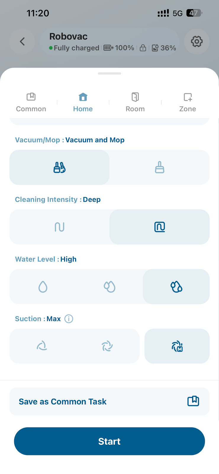 Vor der ersten Wischsitzung mit Ihrem C28 verwenden Sie den Nur-Saugen-Modus über die eufy-App, um Staub und Haare zu entfernen.