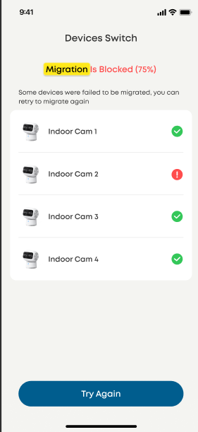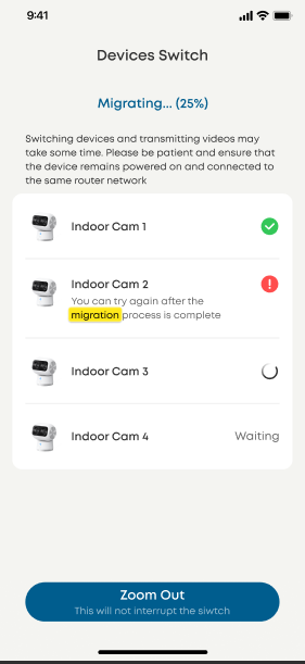 Wenn Sie die One‑Click-Migration nicht verwenden, müssen Sie Ihre Geräte manuell von der vorhandenen HomeBase entfernen und zur HomeBase Professional S1 hinzufügen. Dieser Vorgang ist zeitaufwendiger und erfordert die manuelle Interaktion mit jedem Gerät.