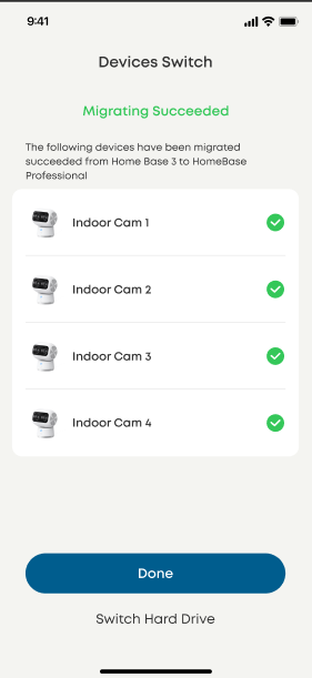 Die Funktion One‑Click-Migration wurde entwickelt, um Ihre Geräte so reibungslos wie möglich von HomeBase 2 oder 3 auf die HomeBase Professional S1 zu übertragen.