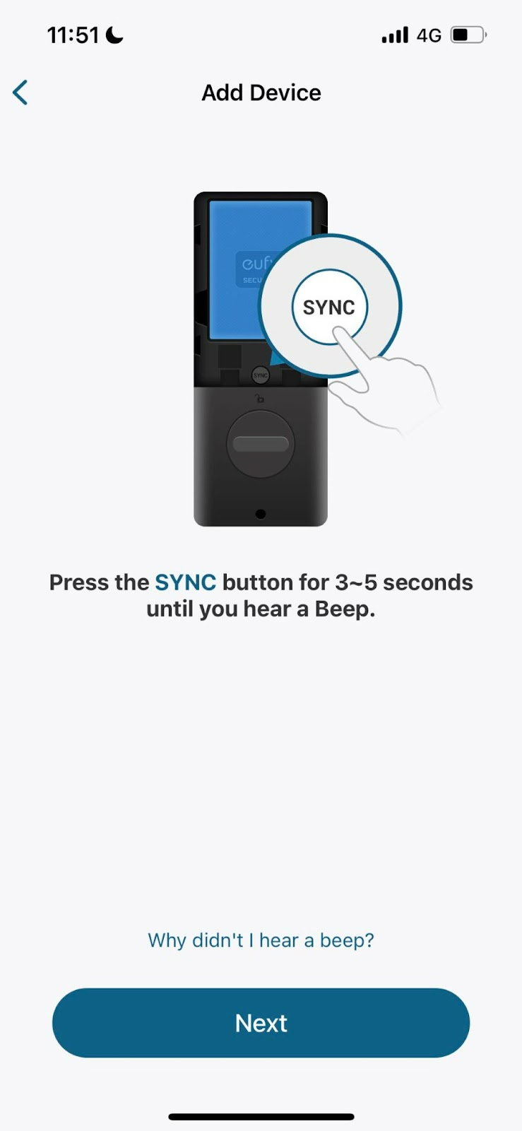 4. Drücken Sie die SYNC-Taste am Video Smart Lock und scannen Sie den QR-Code.