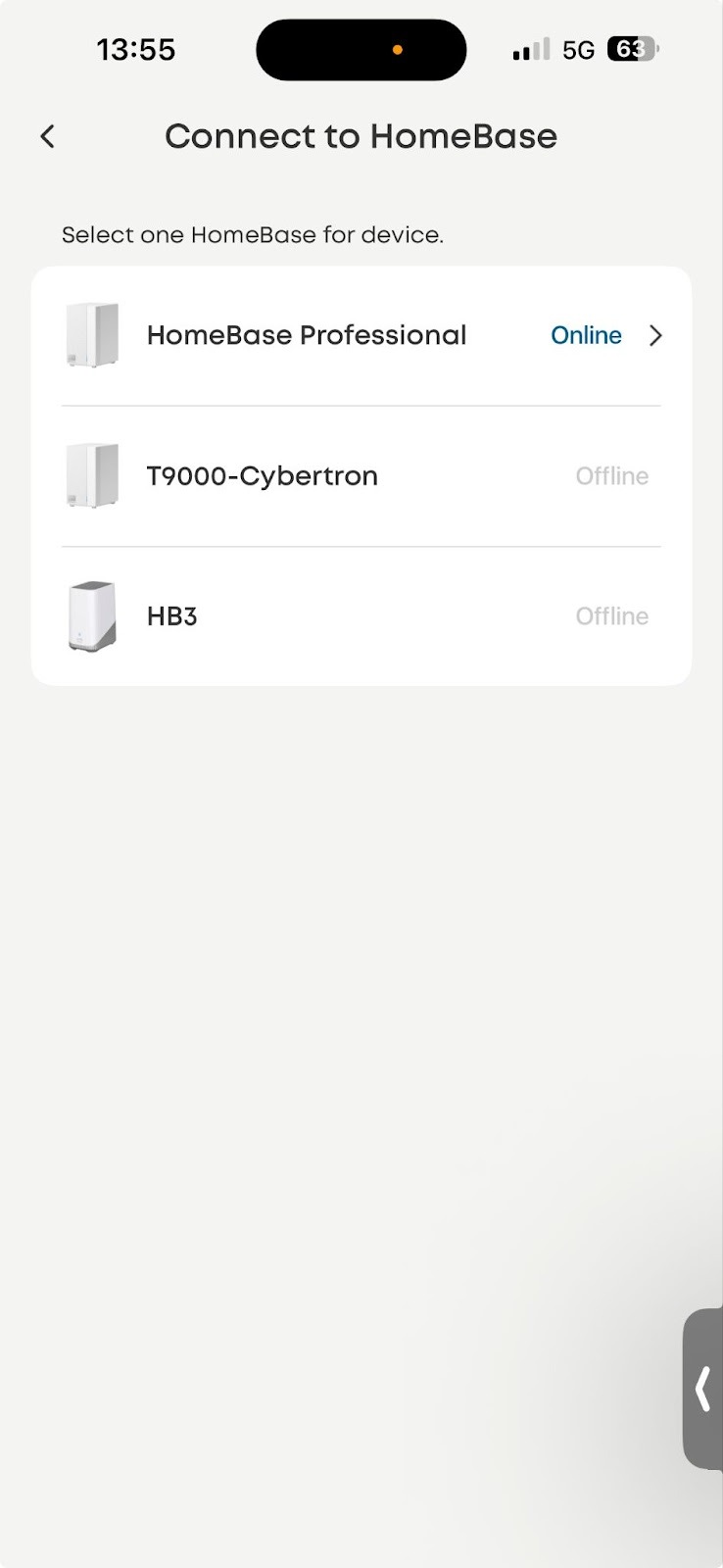 Wählen Sie die zuvor eingerichtete HomeBase Pro S1 aus.