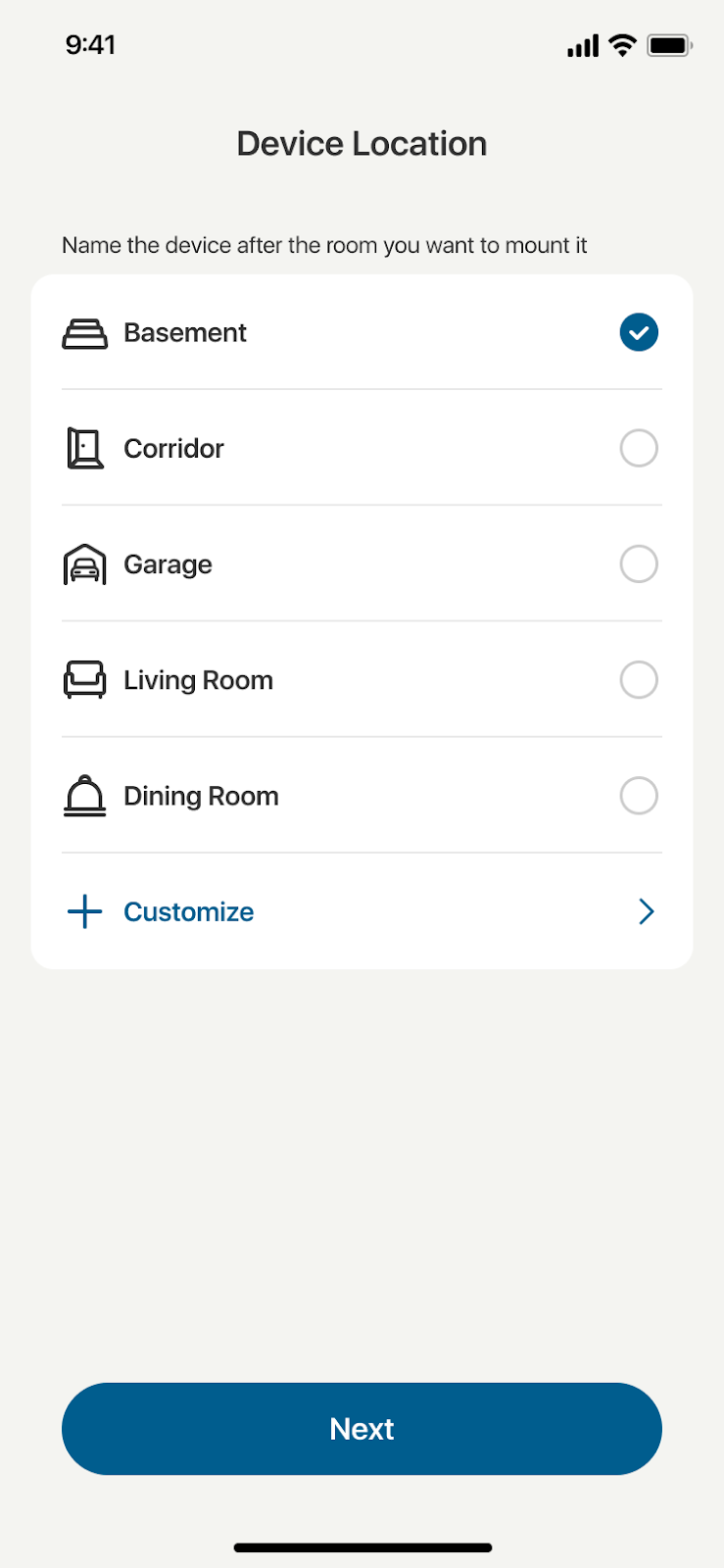 Fügen Sie den Bewegungssensor im gewählten Zuhause hinzu (wo Ihre HomeBase Pro installiert ist).