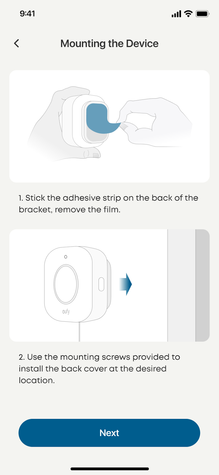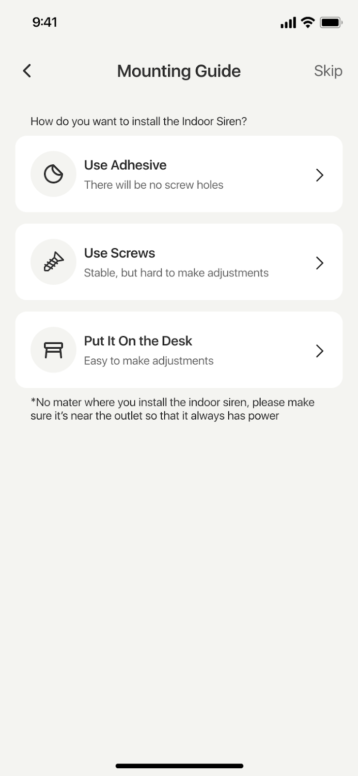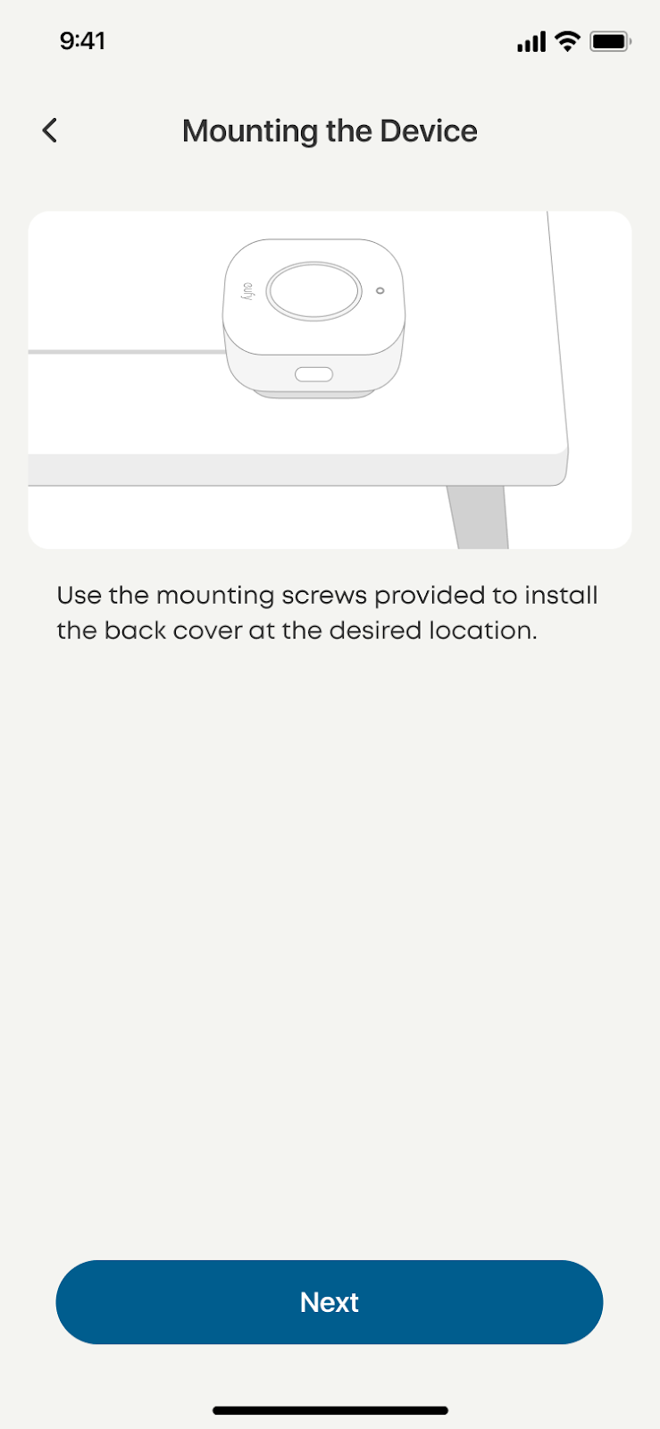 Es stehen drei Befestigungsarten zur Verfügung: Klebestreifen, Schrauben oder die Platzierung auf dem Tisch. Das Installations-Tutorial ist in der App verfügbar.