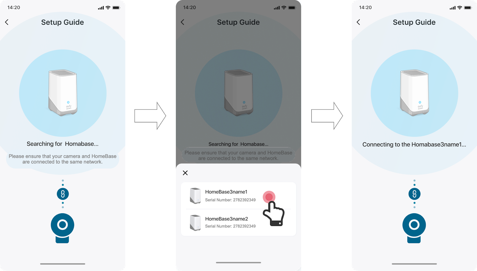 - Suchen Sie nach der vorhandenen HomeBase 3 und verbinden Sie die IndoorCam mit der entsprechenden HomeBase 3.