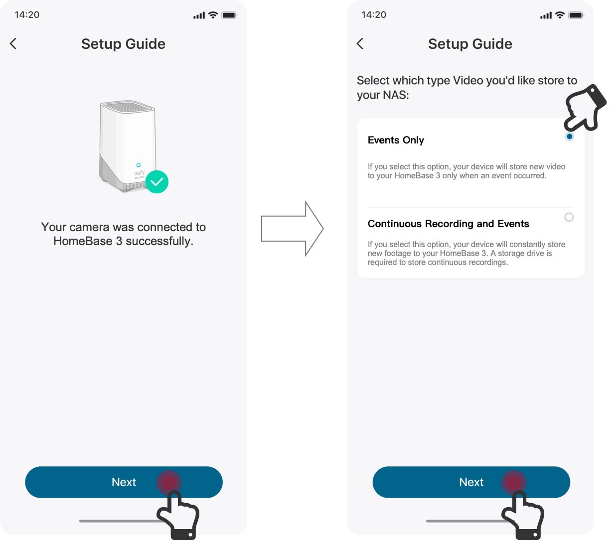 - Wählen Sie die Art von Videos aus, die Sie auf der HomeBase 3 speichern möchten.