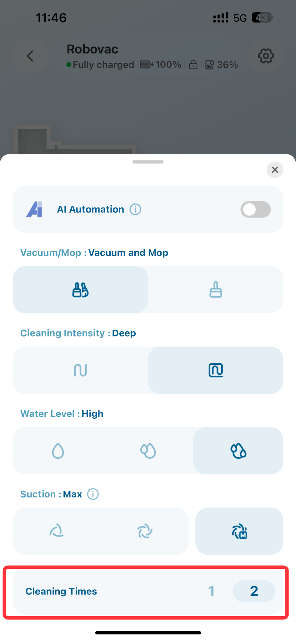 For heavy debris or hair, select the area and choose to clean it twice via the app.