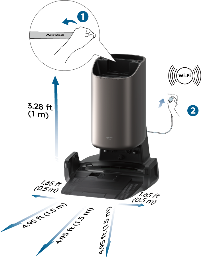 Note: Please ensure there is ample space surrounding the base station, as shown in the image above, to allow the robot to return to it automatically.