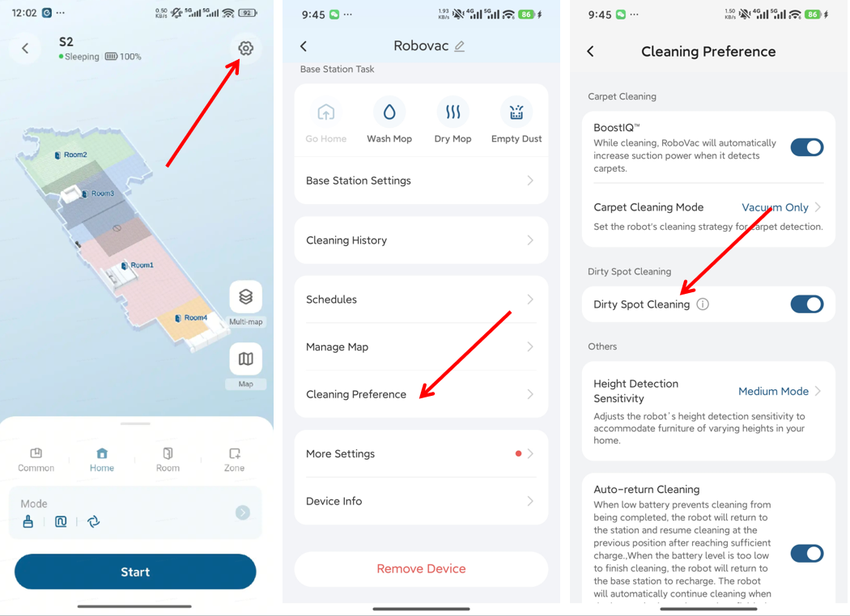 Step 2: Enable the "Dirty Spot Cleaning" Feature