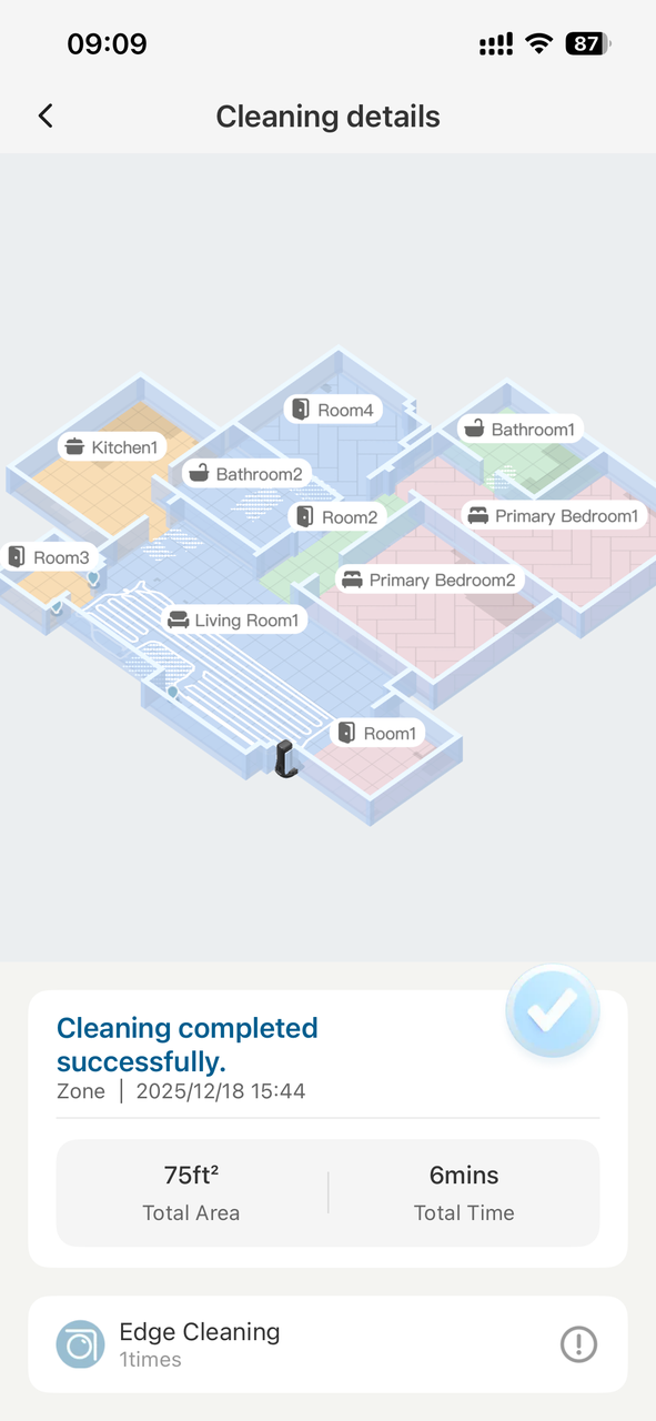 Please also include a screenshot of the cleaning history from the app. If the current cleaning task has not been completed, kindly provide a screenshot of the ongoing cleaning interface instead.